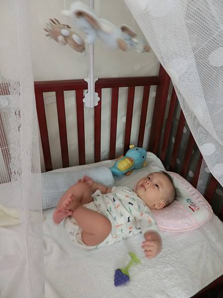 因為很會溢奶的關係 陳皮梅在新生兒時期一直都是側睡